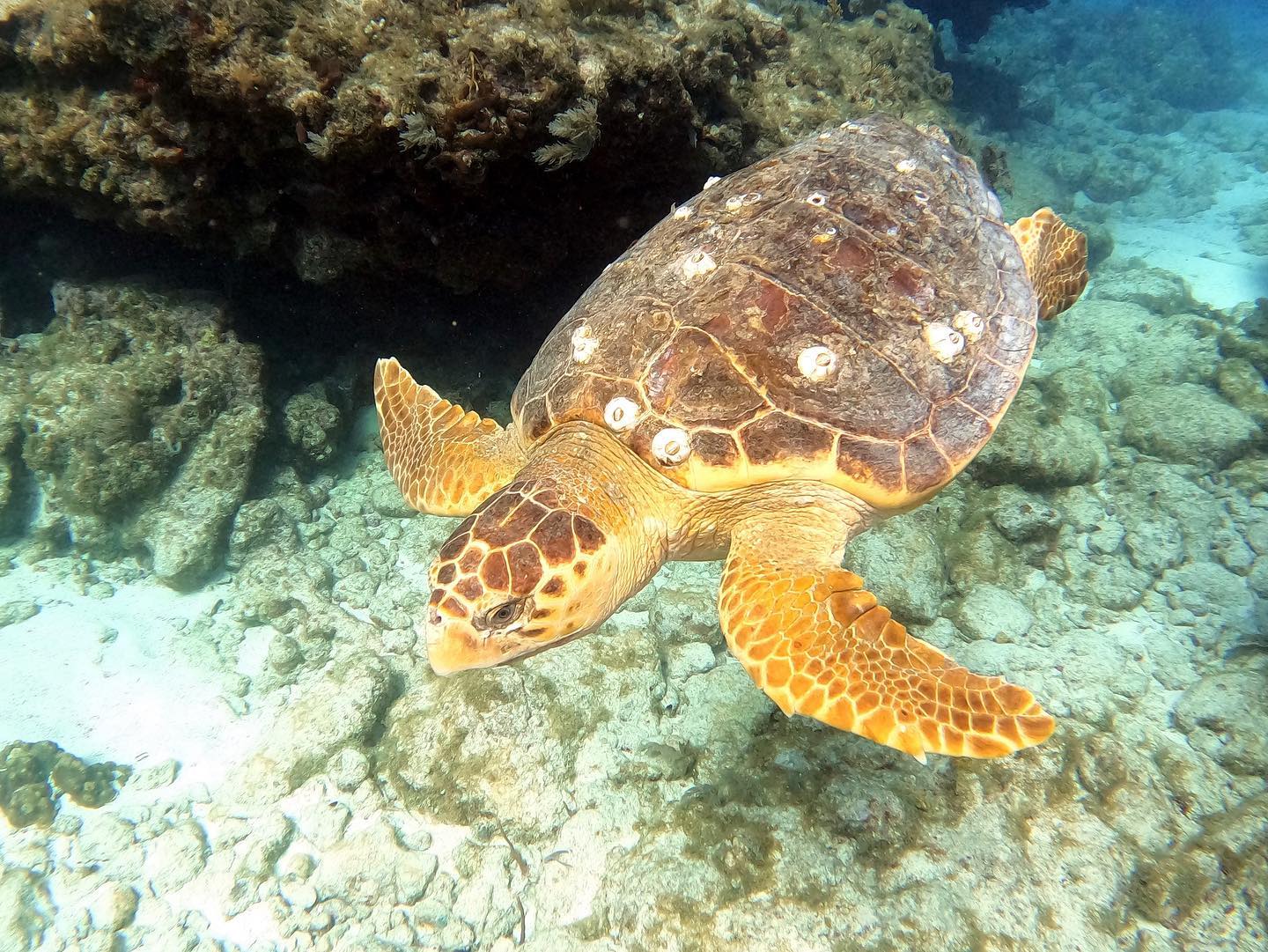 Hawksbill Turtles: Meeting one of these ancient mariners is always a trip highlight. They're easily recognized by their hawk-like beak and beautiful shell patterns. Hawksbills are year-round residents but are especially active in warmer months. Watch them gracefully navigate the reef, munching on sponges and soft corals.